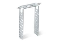 Длина в смонтированном положении 120 мм, толщина 0,9 мм, упакован по 100 шт. в пакете. Расчетная нагрузка подвеса составляет 40 кг.