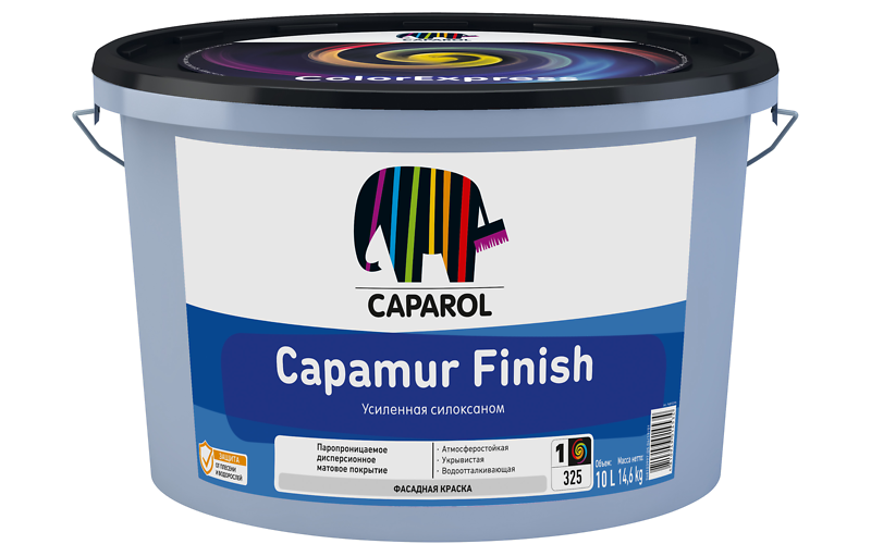 - Колеруется только машинным способом с помощью системы Caparol ColorExpress (объем после колеровки 10 л). Не применять продукт до колеровки!