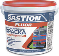 Свойства: краска ПРИМЕНЯЕТСЯ ТОЛЬКО В КОМПЛЕКСНОМ ПОКРЫТИИ BASTION (грунтовка — краска белого цвета — флуоресцентная краска — лак).