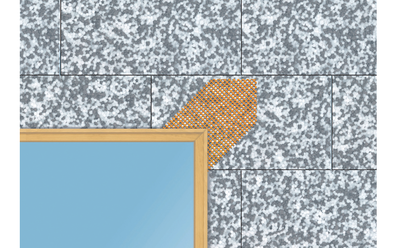 Описание: Полоски стеклосетки для диагонального армирования углов окон и дверей в теплоизоляционных системах.