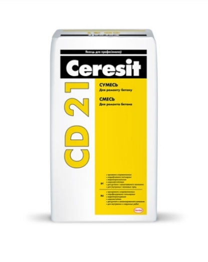 Смесь Ceresit CD 21 предназначена для выравнивания и ремонта бетонных и железобетонных конструкций, а также для заполнения сколов, раковин, пустот, неровностей и других дефектов на поверхности бетонных и железобетонных оснований. Толщина наносимого слоя от 5 до 60 мм. При нанесении смеси на вертикальные поверхности и потолки, толщина слоя за одно нанесение не должна превышать 15 мм. Эффективна при выполнении комплексного ремонта бетонных и железобетонных конструкций, вызванных длительной эксплуатацией или разрушением под влиянием механических нагрузок и коррозионных процессов (балконов, монолитных конструкций, перекрытий, колонн и т.п.). Не применяется для ремонта легкого бетона.