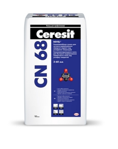 Самонивелирующаяся смесь Ceresit CN 68 предназначена для выравнивания бетонных, цементно-песчаных и ангидритовых оснований пола с последующей укладкой таких покрытий, как линолеум, ковролин, ламинат, керамическая плитка, плита ПВХ и других полимерных покрытий в жилых, общественных, административных зданиях, а также в помещениях с малой интенсивностью воздействия жидкостей. Смесь не применяется в качестве финишного покрытия для пола.