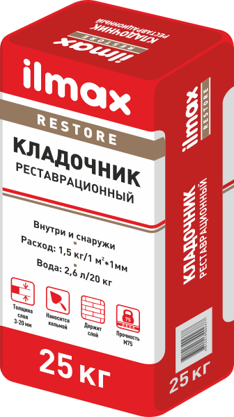 ilmax restore реставрационный кладочник предназначен для восстановления швов и кладки внутренних и наружных стен и перегородок из керамического кирпича и природного камня.