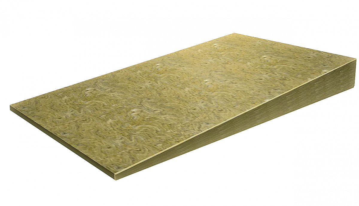 Базальтовая плита ТЕХНОНИКОЛЬ ТЕХНОРУФ КЛИН – это плита с уже заданным уклоном 4,2 %. Она изготавливается из каменной ваты. Клиновидные плиты применяются для создания разуклонки на плоских кровлях, которая необходима для организации сбора воды и ее отведения. Данный материал используется при выполнении двухслойных систем теплоизоляции в качестве нижнего слоя.