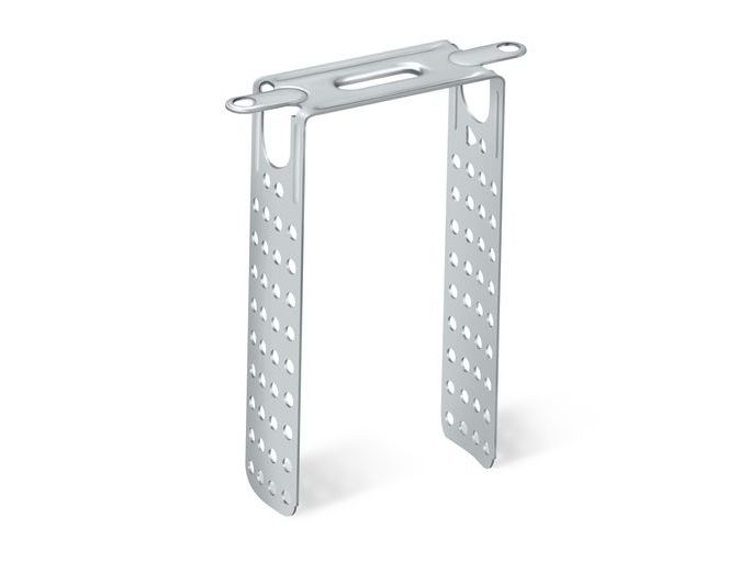 Длина в смонтированном положении 120 мм, толщина 0,9 мм, упакован по 100 шт. в пакете. Расчетная нагрузка подвеса составляет 40 кг.
