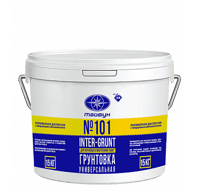 Грунтовка «INTER-GRUNT» «Тайфун Мастер» № 101 применяется для подготовки оснований перед нанесением гипсовых и цементных штукатурок, а также перед использованием гипсовых клеев и клеящих растворов. Это готовый к использованию материал, обладающий высокой стойкостью к воздействию щелочных сред, представляющий собой дисперсию полимера с добавлением кварцевого песка. Нанесение грунтовки с содержанием наполнителя позволяет получить шероховатую поверхность, что значительно увеличивает адгезию очередных слоев материала с основанием и позволяет получить высококачественное штукатурное покрытие внутри и снаружи помещений.