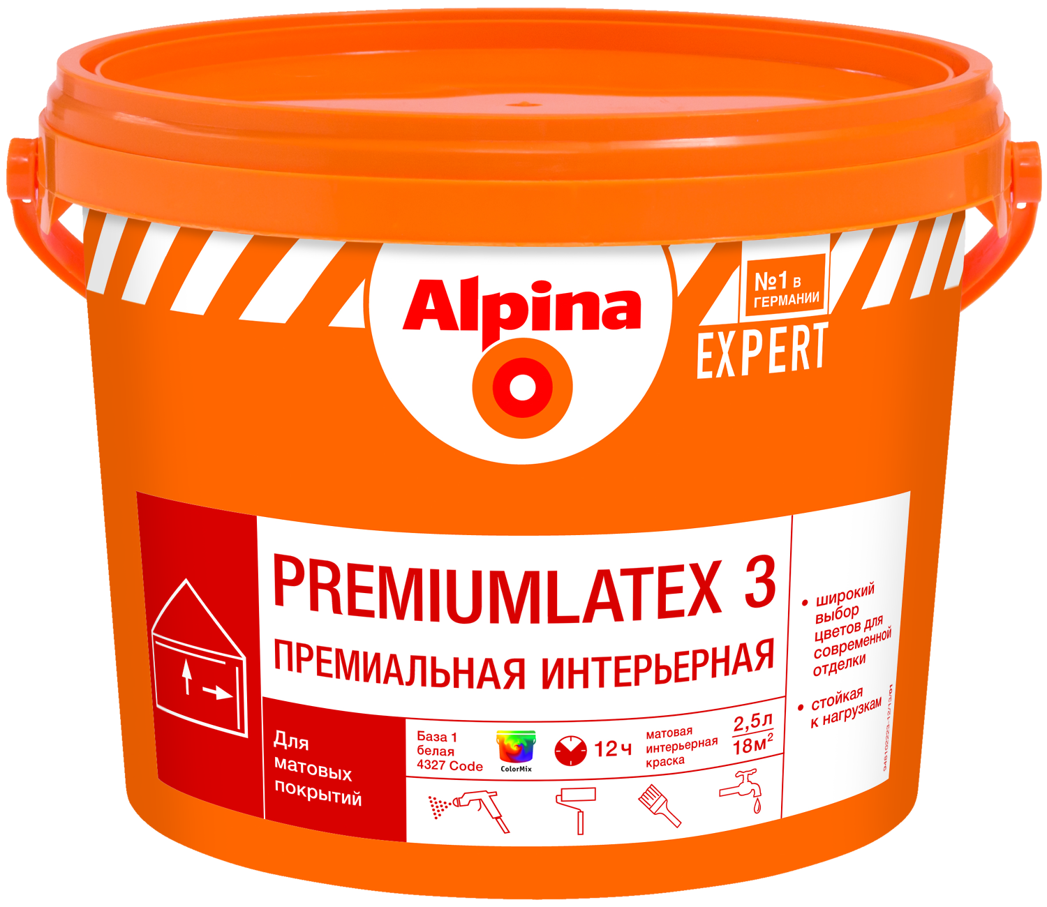Дисперсионная краска для оформления интерьеров, для матовых, с хорошей стойкостью к истиранию и высокой укрывистостью покрытий. Покрытия имеет хорошую износостойкость, подходит для стен жилых и офисных помещений с повышенными поверхностными нагрузками.