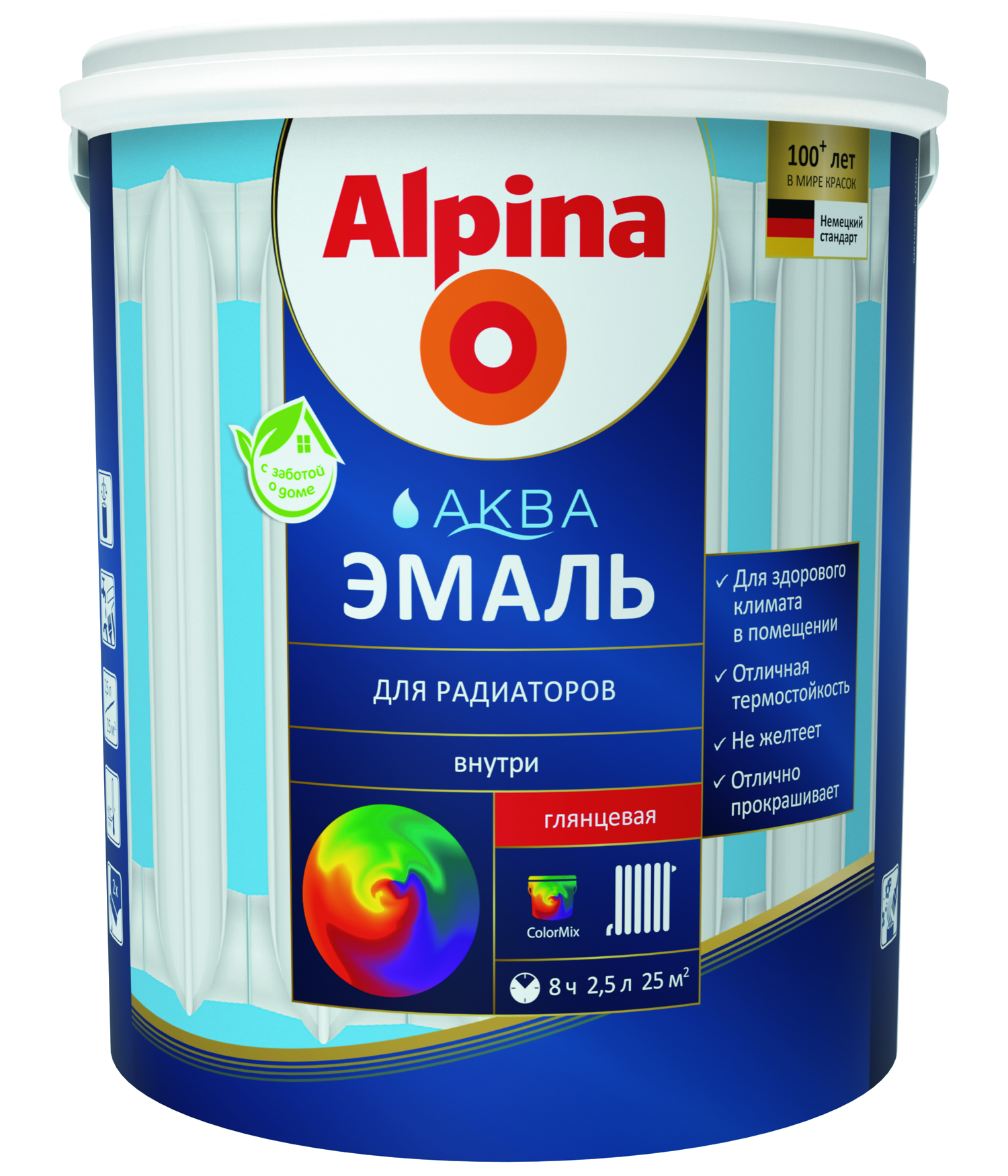 Alpina АКВА эмаль для радиаторов не содержит вредных примесей выше норм, установленных в ЕС и странах СНГ.