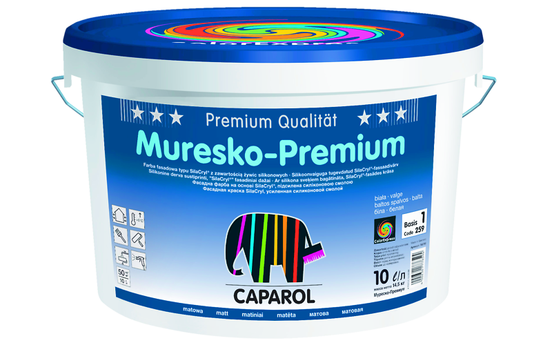 Muresko-Premium колеруется самостоятельно с помощью полнотоных и колеровных красок CaparolColor или AVA (Amphibolin Vollton- und Abtönfarben).
