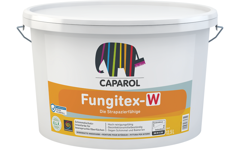 Fungitex-W является специальной латексной краской с фунгицидными и бактерицидными функциональными добавками. Подходит для применения в помещениях производственных предприятий с высокой влажностью, таких, как помещения пивоваренных производств, мясокомбинатов, молочных ферм, помещений больниц, а также санитарных и жилых помещений.