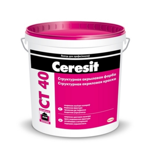 Структурная акриловая краска Ceresit CT 40 предназначена для окраски поверхностей строительных конструкций и элементов внутри и снаружи зданий по минеральным основаниям (бетон, кирпич, цементно-песчаные штукатурки), внутри зданий по гипсовым основаниям. Также может применяться для отделки деревянных оснований из ОСБ, ДСП, ЦСП и т.д. внутри помещений. Может служить в качестве декоративно-защитного слоя в легких штукатурных системах утепления зданий. Колеруется в соответствии с палитрой Ceresit Colors of Nature и другими цветовыми коллекциями. Возможен подбор цвета по образцу заказчика. Нагревание фасадов солнцем вызывает значительные внутренние напряжения, поэтому темные и насыщенные цвета следует использовать на небольших поверхностях и архитектурных элементах.