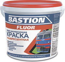 Свойства: краска ПРИМЕНЯЕТСЯ ТОЛЬКО В КОМПЛЕКСНОМ ПОКРЫТИИ BASTION (грунтовка — краска белого цвета — флуоресцентная краска — лак).