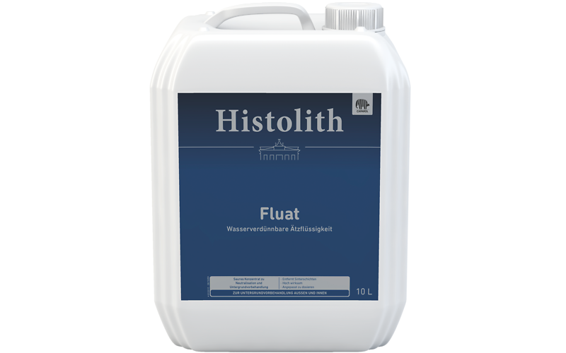 Histolith® Fluat вступает в реакцию со штукатурками, содержащими известь и цемент. При этом нейтрализуются кислые составляющие. При правильном применении вода для смывания не содержит кислот.