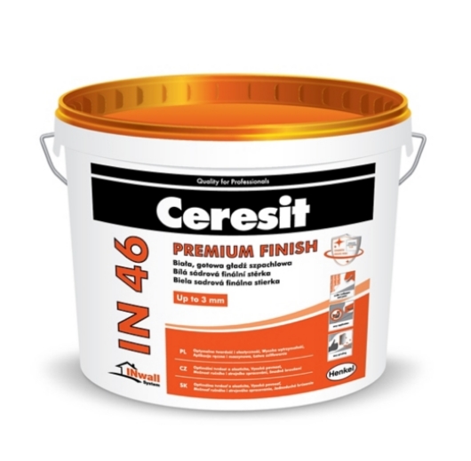 Белая готовая к применению шпатлевка Ceresit IN 46 служит для финишной подготовки стен и потолков под окрашивание или оклейку обоями. Благодаря применению технологии InSure и специальных заполнителей SMART POLYMER шпатлевка позволяет получать эластичное и прочное покрытие. Материал готов к применению. После отвердения легко обрабатывается. Неизрасходованный материал следует хранить в закрытой таре. Шпатлевку не применять на деревянных, металлических, стеклянных и пластмассовых основаниях, а также в помещениях с высокой влажностью. Для заполнения трещин и предварительного выравнивания поверхности следует применять шпатлевку Ceresit IN 35.
