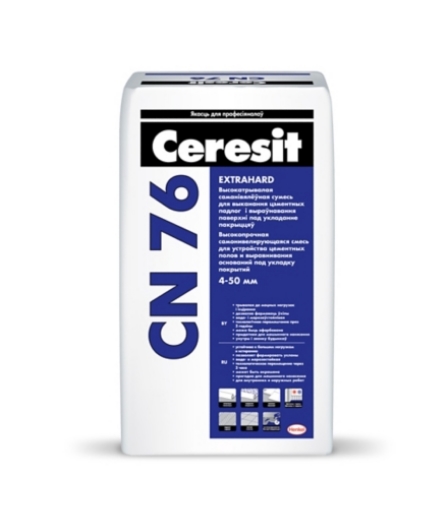 Смесь Ceresit CN 76 предназначена для выравнивания прочных бетонных оснований. Ее можно использовать для изготовления эксплуатируемых покрытий либо как выравнивающий слой под напольные покрытия, например, из керамической плитки. Может использоваться как внутри, так и снаружи зданий. Материал может использоваться в производственных помещениях, складах, мастерских, гаражах, на погрузочных рампах. Растворная смесь Ceresit CN 76 может использоваться для устройства покрытий полов под уклоном.