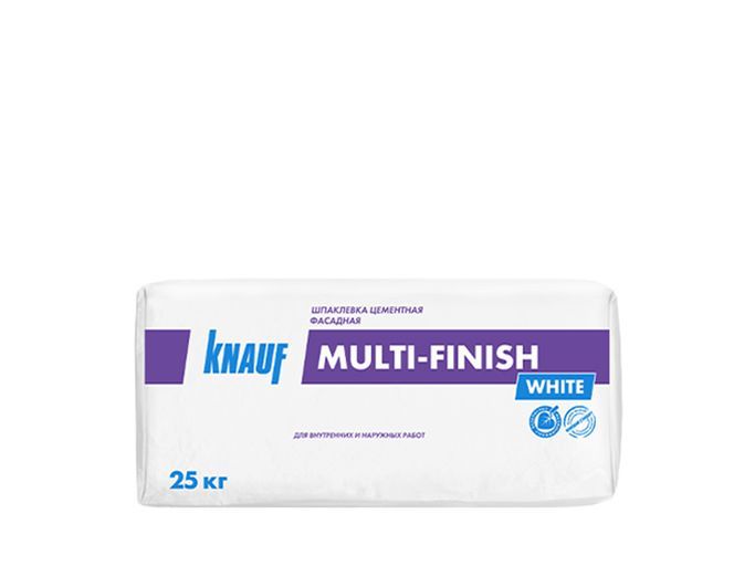Шпаклёвка КНАУФ Мульти-финиш «белый» - сухая смесь на основе белого цемента с заполнителем, полимерными добавками, и армирующим волокном. Применяется для наружных и внутренних работ.