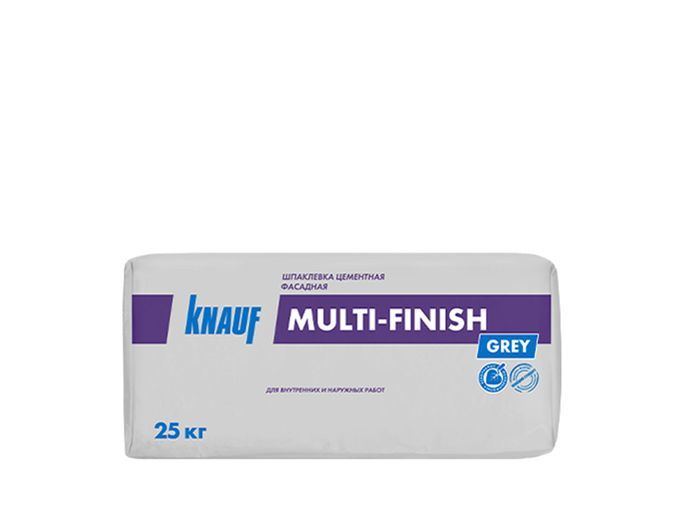Шпаклёвка КНАУФ Мульти-финиш «серый» - сухая смесь на основе цемента с заполнителем, полимерными добавками, и армирующим волокном. Применяется для наружных и внутренних работ.