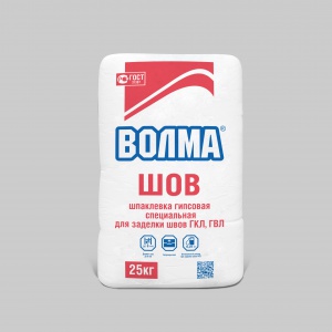 ВОЛМА-Шов - сухая шпаклевочная смесь на основе натурального гипсового вяжущего, модифицированная минеральными и химическими добавками, обеспечивающими высокую адгезию, водоудерживающую способность и оптимальное время работы.
