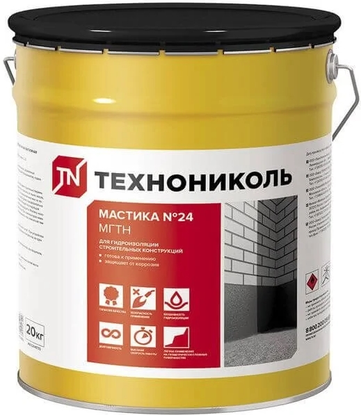 Мастика ТехноНИКОЛЬ №24 МГТН – это готовый состав холодного применения для гидроизоляции строительных сооружений. Изготавливается битумная гидроизоляционная мастика МГТН № 24 из нефтяного битума с добавлением минеральных наполнителей, растворителей и модификаторов.