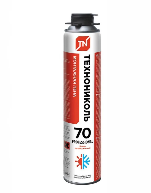 ТЕХНОНИКОЛЬ 70 PROFESSIONAL реализуется в аэрозольных баллонах для работы со специальным пистолетом для монтажной пены. Хранить баллоны рекомендуется в вертикальном положении при температуре не выше +25°С и не ниже +5°С. Не нагревать и беречь от огня.